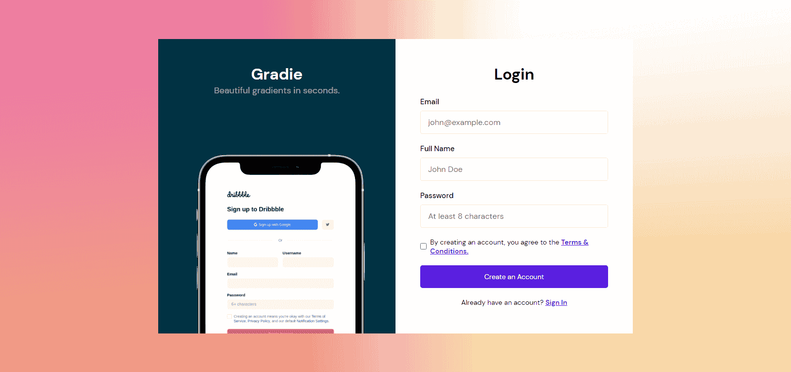 Gradie Sign Up Page