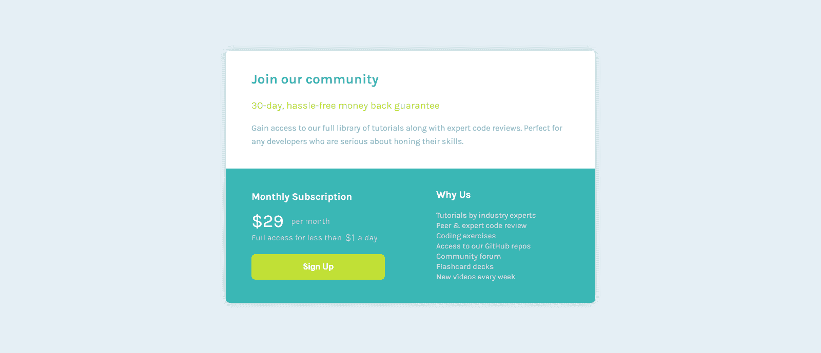 Pricing Card